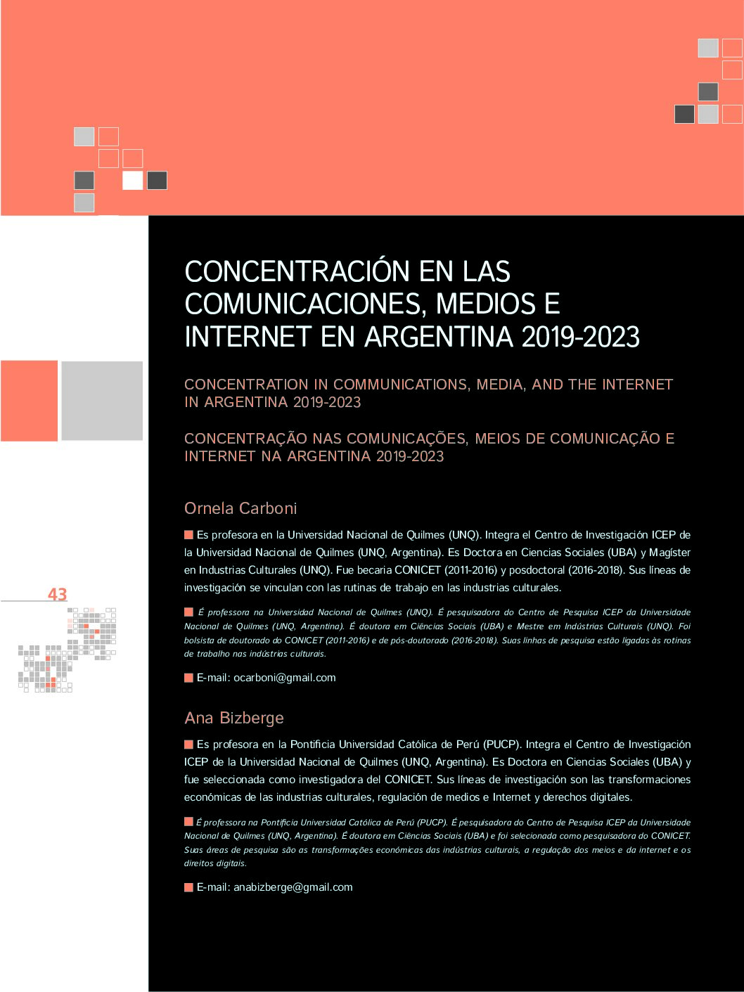 GMICP researchers Guillermo Mastrini, Martín Becerra, Ana Bizberge, Ornela Carboni, and Agustín ...